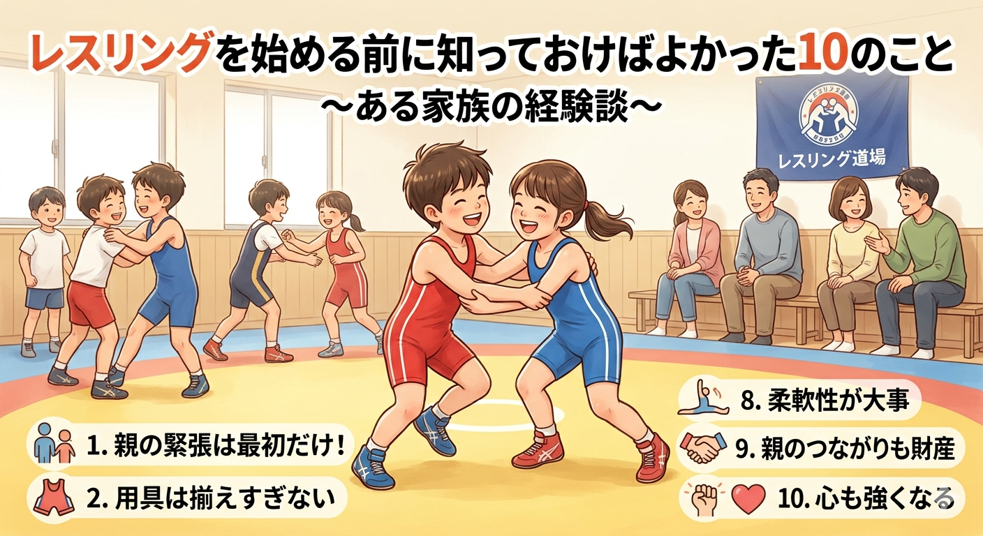 子どもがレスリングを始めて、もう数年が経ちます。 今となっては「やらせてよかった!」と心から思えるのですが、正直なところ最初はわからないことだらけで、いくつか「もっと早く知っていれば…」と思ったことがありました。